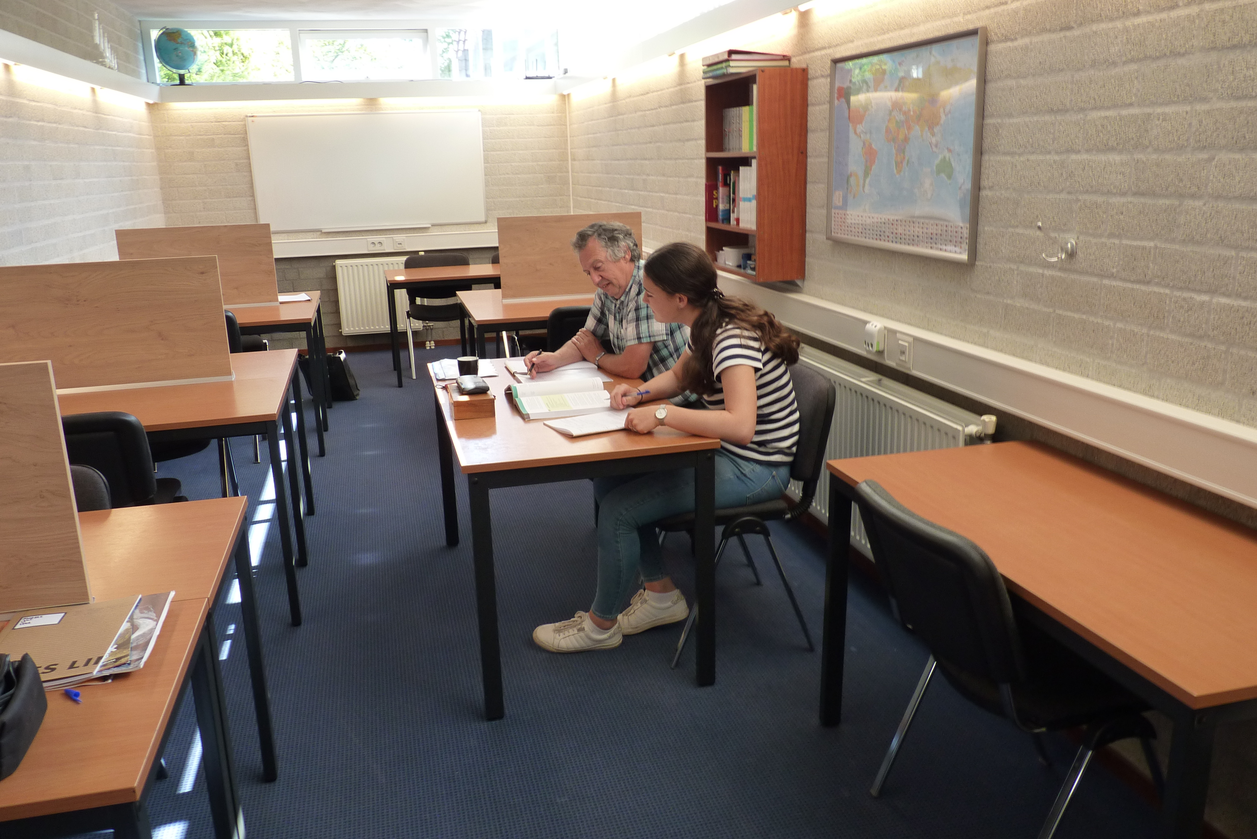 Na dit bijwerken wordt er in een aparte ruimte, onder begeleiding van een docent,